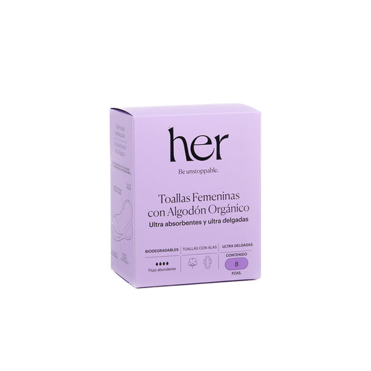 El material de las toallas esta increíble. Siempre tuve problemas con otras marcas ya que me irritaban en la piel y las de HER cero tuve problema!