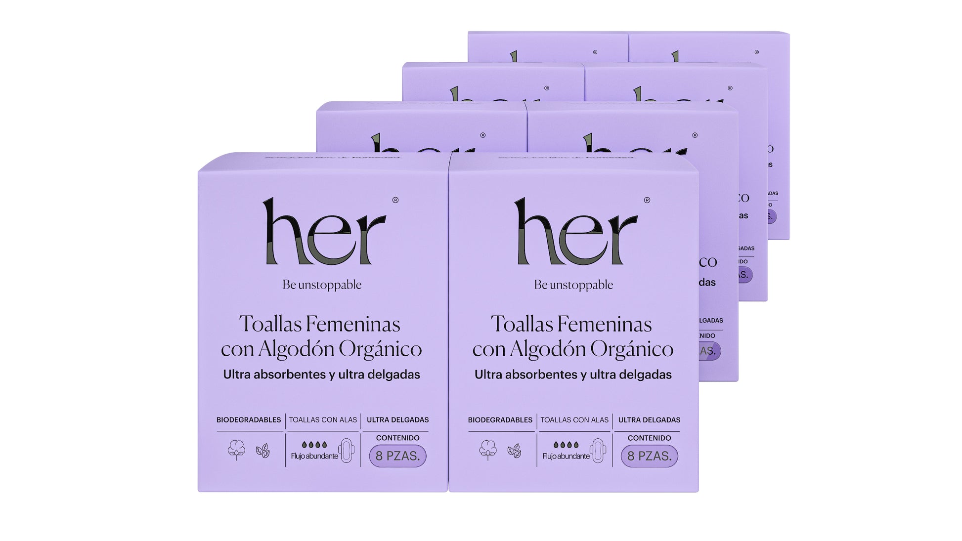 Kit completo de 8 cajas de toallas femeninas Flujo Abundante.